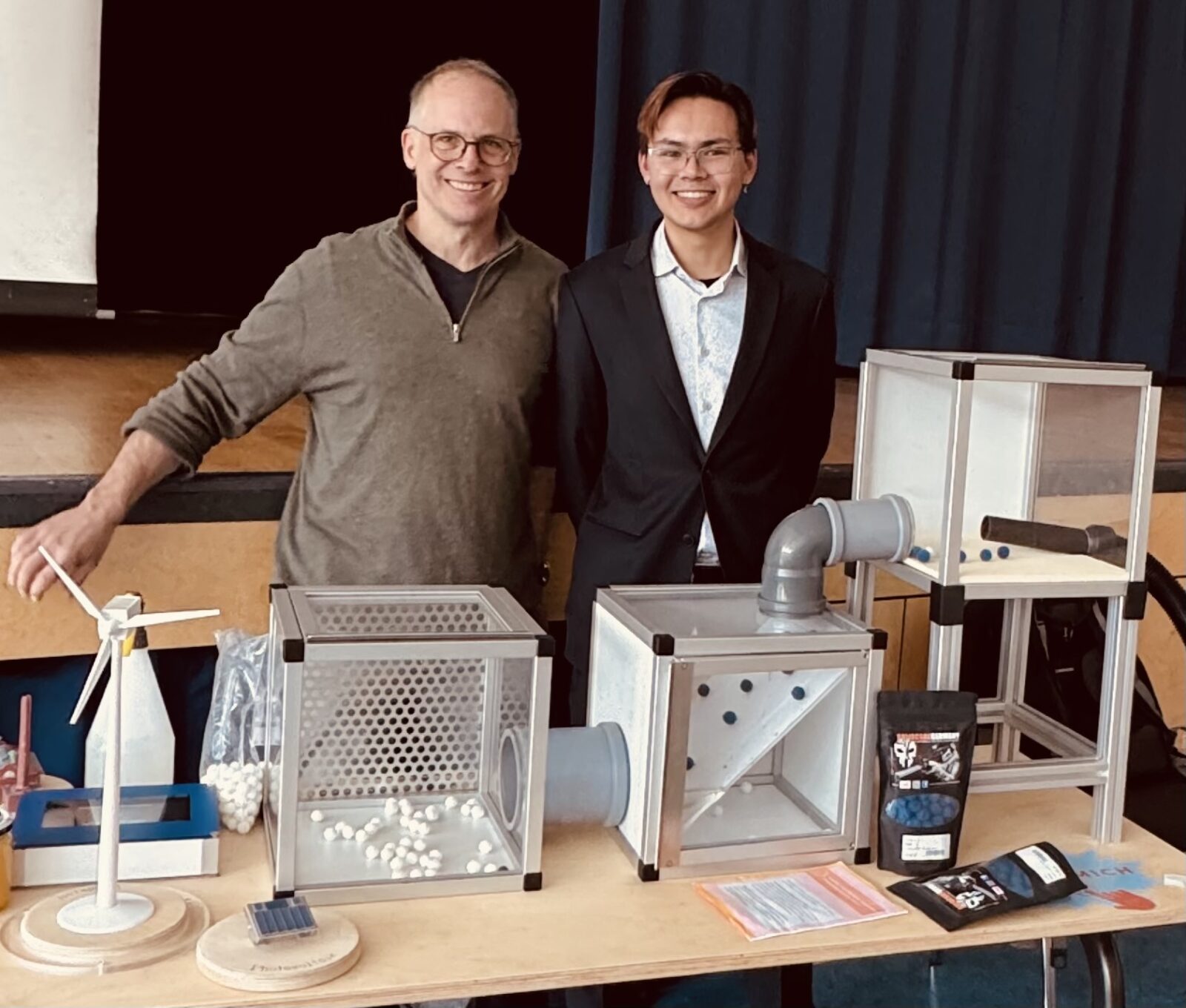Besonders anschaulich wurde es, als der ehemalige Schüler das komplexe chemisch-technische Verfahren vereinfacht in einem Modellexperiment demonstrierte. Die Schülerinnen und Schüler konnten so live erleben, wie Forschungslösungen für globale Probleme entstehen.
